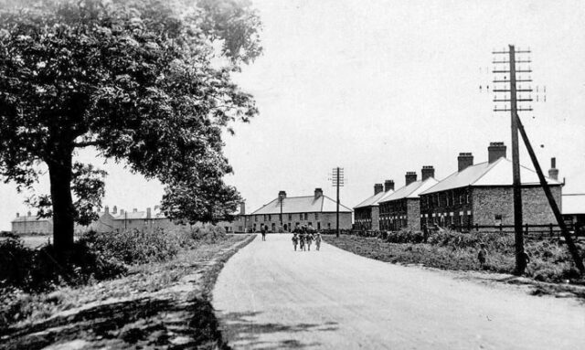 New housing in the village of Coates, rather grandly proclaimed by the photographer as “Coates New Town”. This image appears to date back to the 1930s and before this section of road was bypassed by the newly built A605 March Road which would today pass across the field to the left of the tree.
