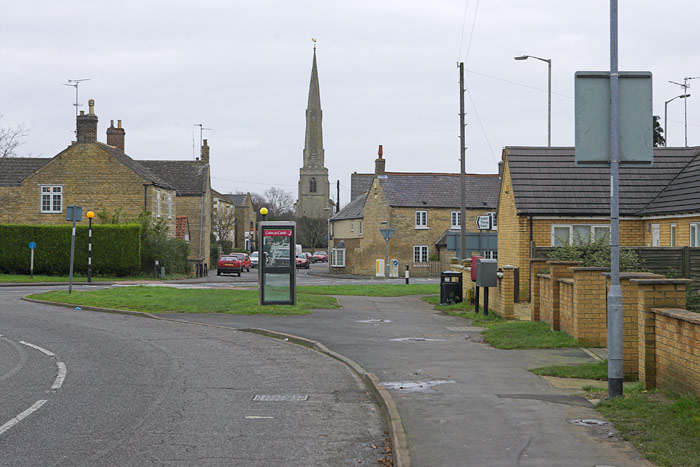 Captured from Helpston Road, this image looks along High Street with Lincoln Road crossing left to right in the middle of the picture.
