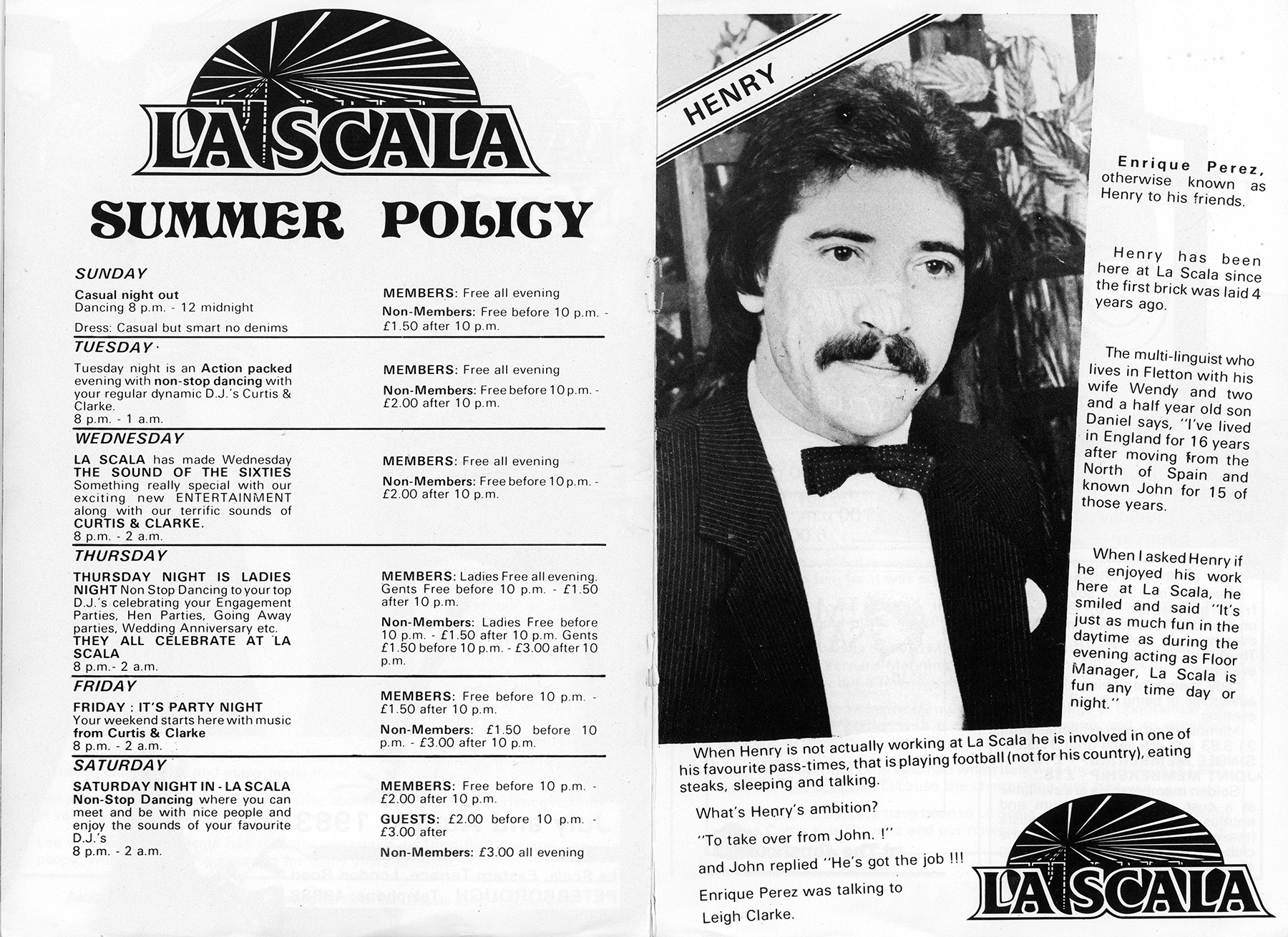 Home City Centre Eastern Terrace La Scala Magazine #1 (1983) City CentreEastern TerraceLondon Road La Scala Magazine #1 (1983) August 27, 2021 Full spread pages from LaScala magazine of July/August 1983. The nightclub opened in 1980 on Eastern Terrace next to the POSH ground.