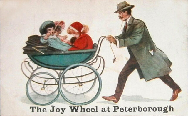 Home Uncategorized The Joy Wheel at Peterborough Uncategorized The Joy Wheel at Peterborough October 30, 2020 Probably an attempt at Edwardian humour as this old postcard makes reference to the “Joy Wheel” which was a very popular fairground ride at the time involving people trying to cling on to and stay onboard a motorised spinning disc !