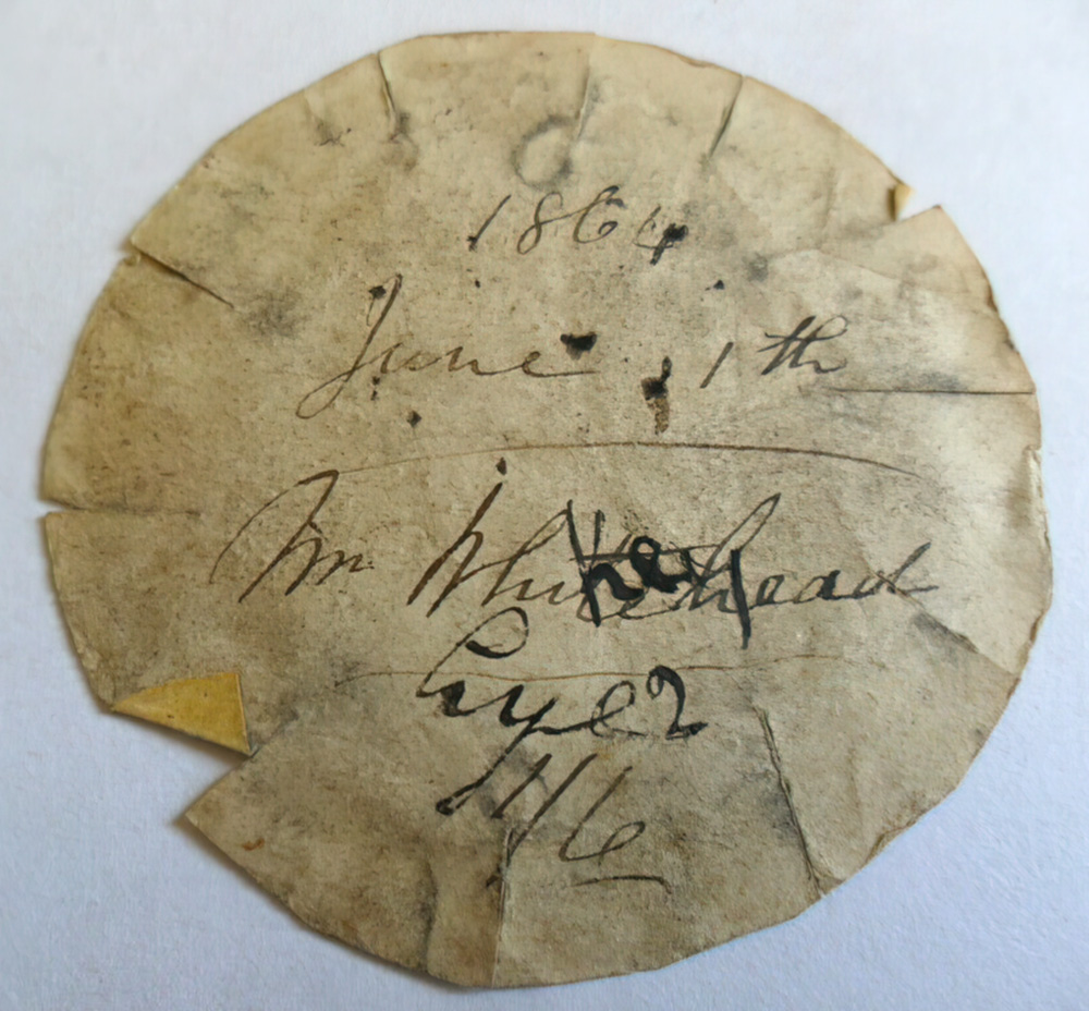 These papers would be returned by the watchmaker after repairing pocket watches and this one identifies the owner on the back as platelayer John Whitehead from Eye.