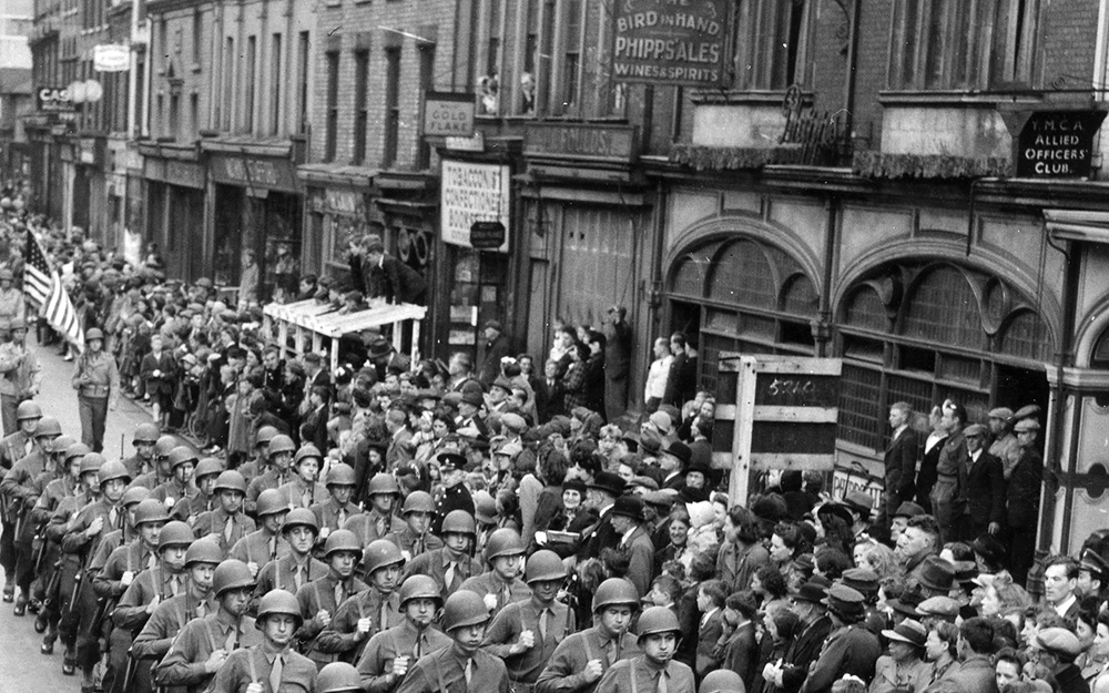 Home City Centre Long Causeway USAAF 8th on Long Causeway (1945) City CentreLong CausewayMilitary USAAF 8th on Long Causeway (1945) August 6, 2021 Members of the Glatton Airfield based USAAF 8th 457th Bomb Group marching on Long Causeway to celebrate VE Day in May 1945