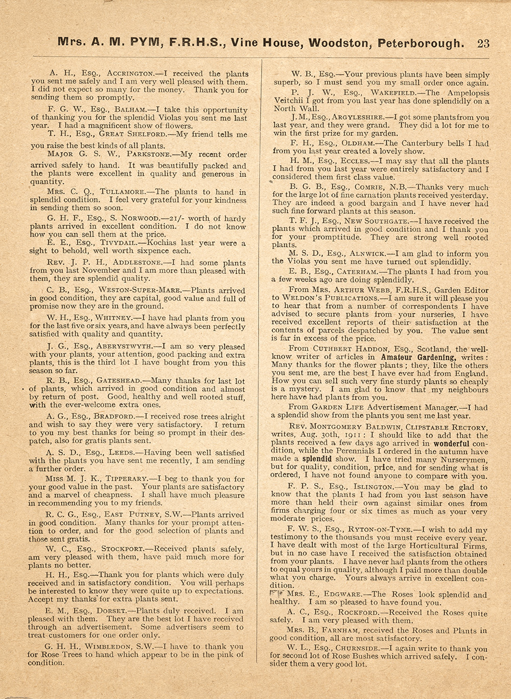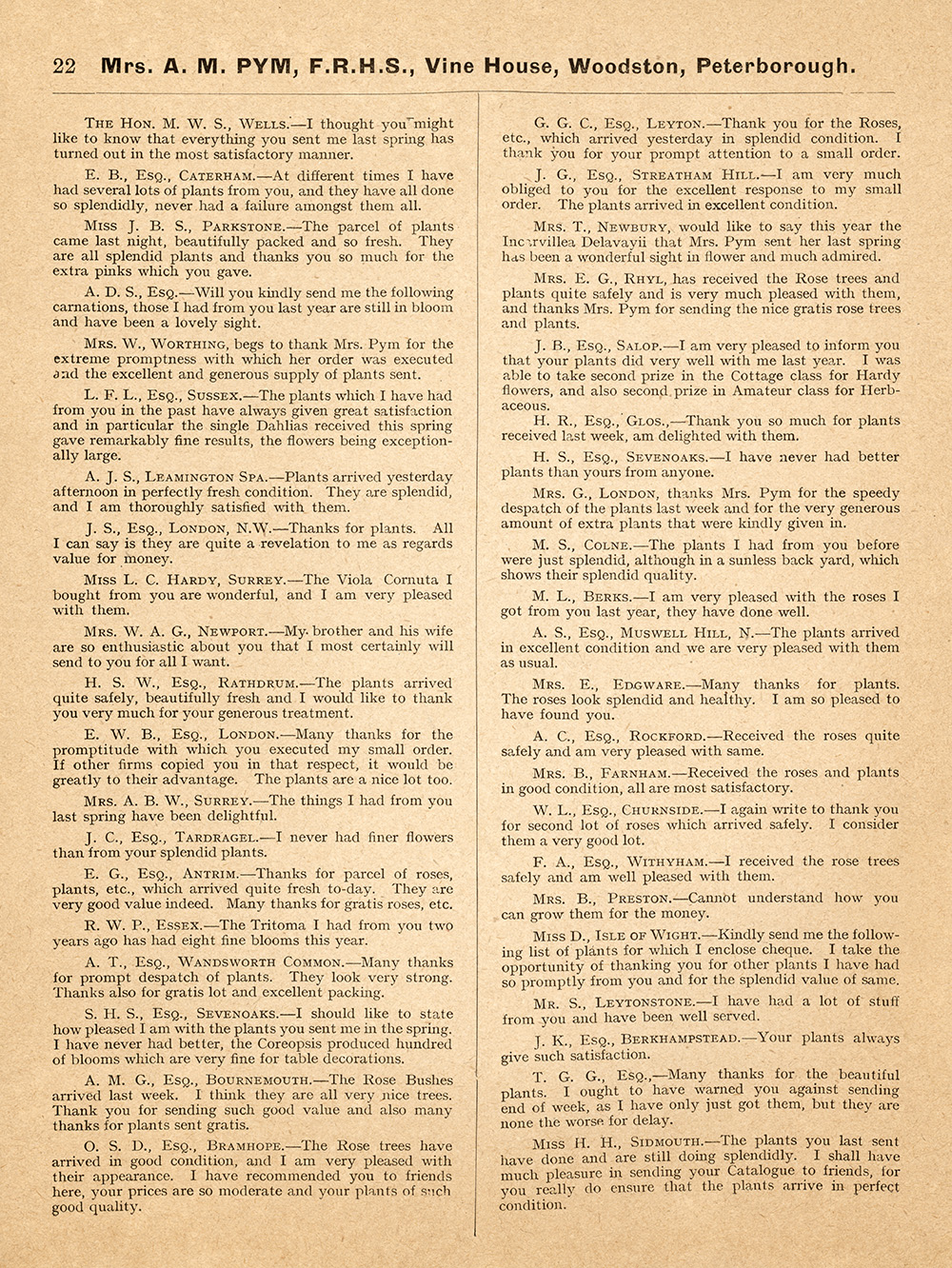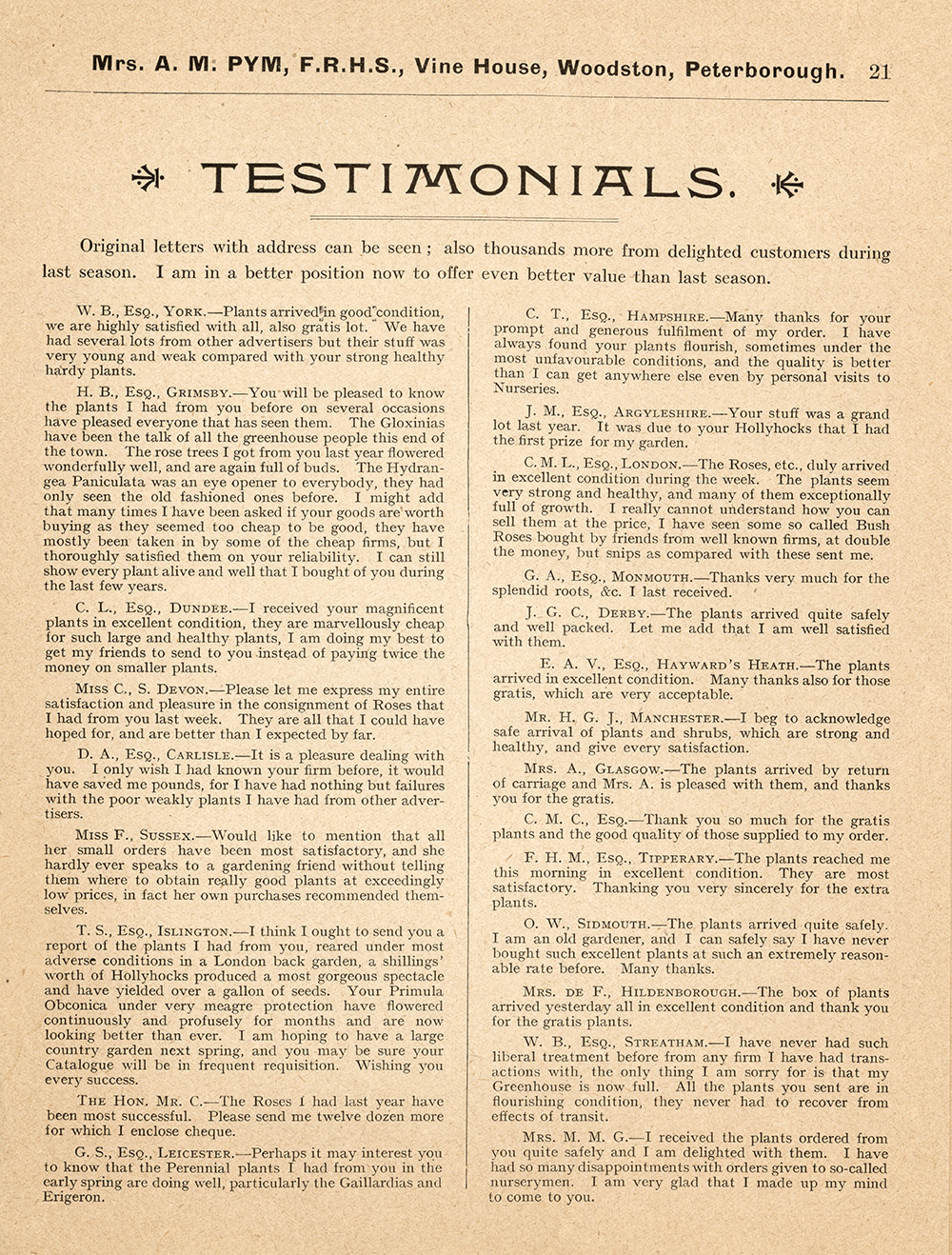 Home City Centre Oundle Road Vine House Nursery, Woodston (1913) City CentreOundle RoadVillagesWoodston Vine House Nursery, Woodston (1913) July 4, 2022 A 1913 catalogue from Alice Marie Pym’s nursery on Oundle Road, Woodston.